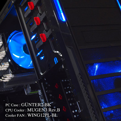 イルミネーションLEDおよびブルーLED付き静音12cmファンを搭載。