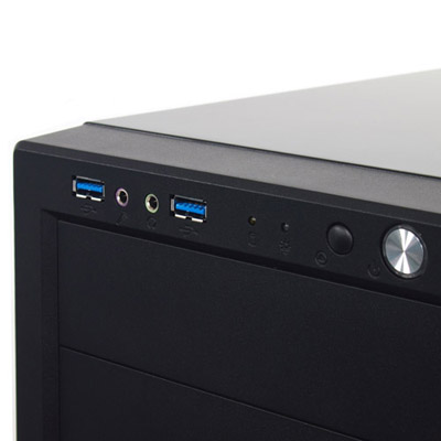 定番ATXミドルタワーケースのUSB3.0コネクタ搭載版、電源ボトムレイアウト型オールブラックフレーム採用、静音仕様、電源無し、ブラック