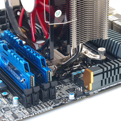 メモリスロットなどCPUソケット周りの物理干渉を防ぐ50mm幅のナロータイプフィンデザインに6mm径ヒートパイプ4本を組み合わせた普及価格帯モデル。