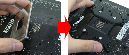 ソケット1366用にあらかじめ、左の画像のようにバックプレートにねじで止めておき、