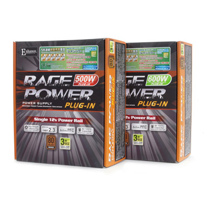 Enhanceブランド80PLUSブロンズ取得ATX電源、プラグインケーブル仕様、
